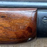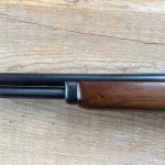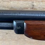 Marlin 30/30, early Model 336 Short Carbine with Waffle Top in very nice condition. 20 inch barrel, half mag, pistol grip, with fromt sight hood. Bluing in very nice condition. A few safe kisses, not a lot of wear. One small blemish in forend wood, see pic.