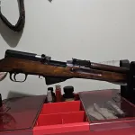 Russian sks. Runs well, kept clean, reliable and a steel hitter at 200 yards with open sights.