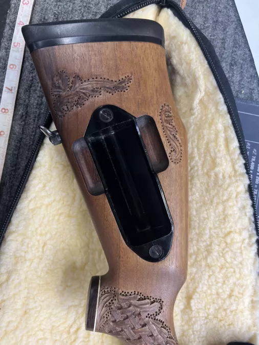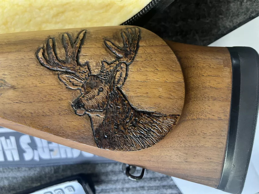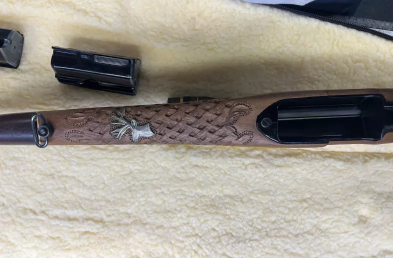 Made in Austria. Model S with double set triggers and Leupold Var -X 3 4.5-14-50 Matte. Mint Shape with custom Mule deer carved into stock. 2 clips -one in stock. Low round count. 25.5 inch barrel. All Original. Serious inquiries only
