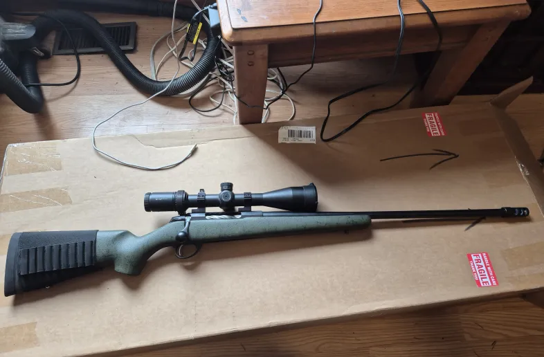 Tikka 6.5 roughtech 24" fluted barrel and Heathen muzzle brake with Bell and Carlson Olive /black splatter stock and Vortex Strike Eagle 4-24×50 MOA scope Talley rings with bubble level. Excellent shooter barely used at range only maybe 80 rounds Reduced from $2400 down to $2100 firm no trades