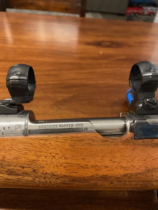 Stock does have small dings but no scratches hurting the wood grain. Comes with sling swivels and 1-inch rings, and bases installed. Checkering is stunning on the stock is stunning and it makes for a beautiful, light, handy rifle, with a black rubber recoil pad.