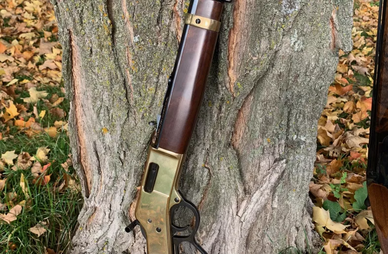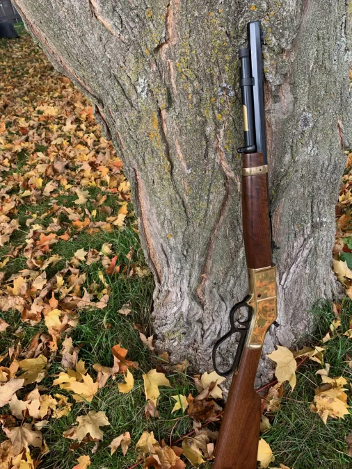 Features: Big loop lever, octogonal barrel, tube magazine, matching alloy butt plate, hammer spur, buckhorn folding sights, drilled and tapped, currently dead-on at 50 yards (240 grain soft nose).