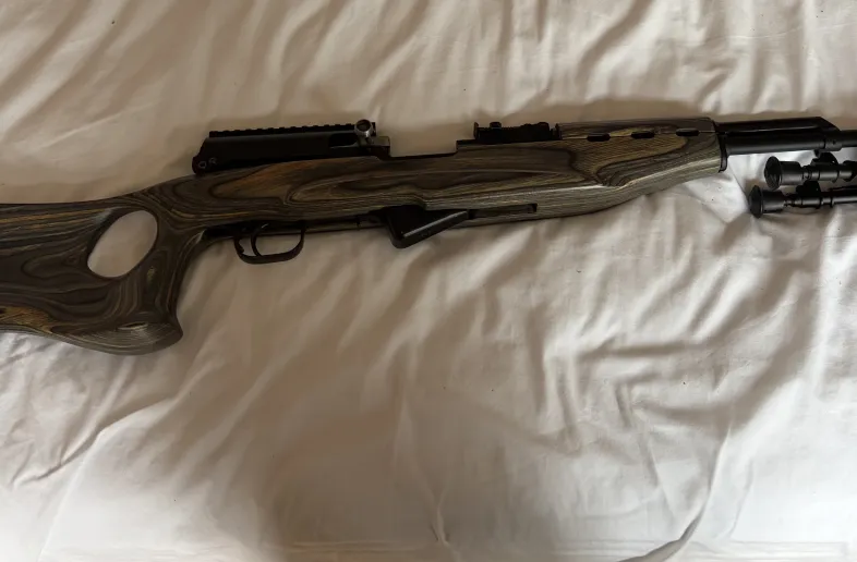 Russian refurb (BBQ paint) sks in great shape with a very nice thumbhole timberline laminate stock.