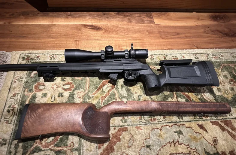 CZ 457 .22 for sale. Beautiful rifle, mint condition. I have not shot more than a few hundred rounds through this. It currently has a KRG Bravo chassis (adjustable cheek riser) but I also have the factory wood stock as pictured in the photos. The wood is in like new condition as it has not been on the rifle with the change to the KRG chassis. Threaded barrel end for additional attachments should the shooter decide. One 10 round magazine included.