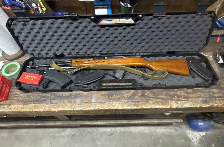 Mint condition 1962 type 56 Chinese SKS French tickler model. Great condition and all of the serial numbers match. Only a couple hundred rounds put through the gun. Comes with 3 archangel 20 round magazines pinned to 5.