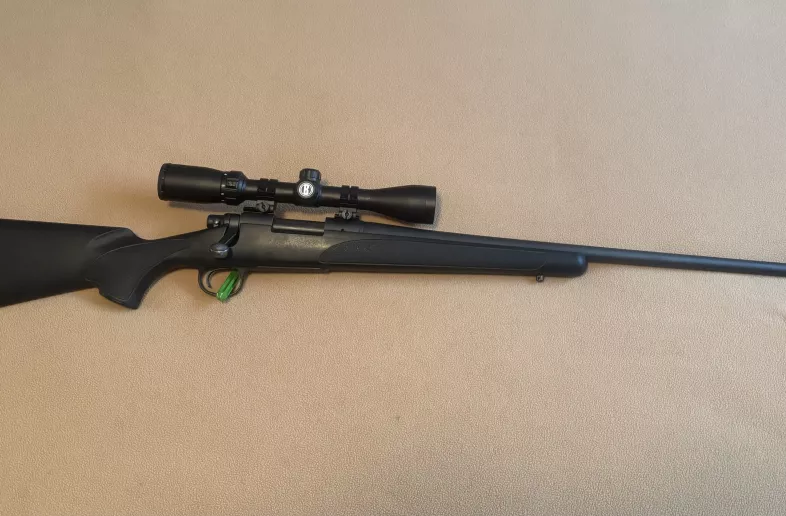 Very accurate rifle, synthetic stock, 3-9x40 Bushnell Sportsman scope, 24’’ barrel, 3+1 round capacity, hinged floorplate.