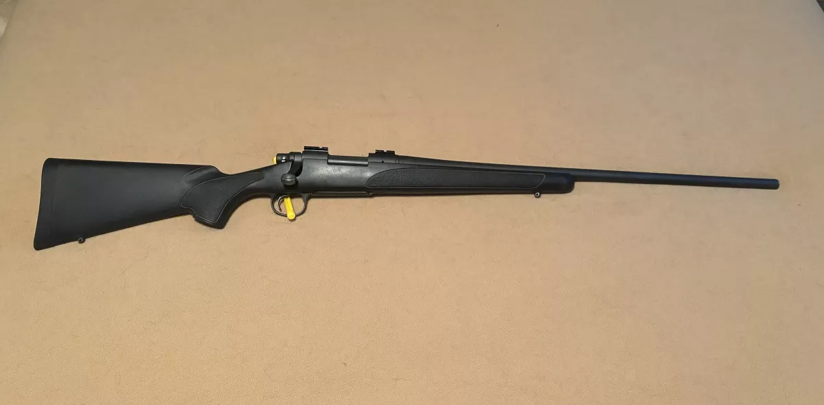 Very accurate rifle, synthetic stock, scope mounting bases, 24’’ barrel, 3+1 round capacity, hinged floorplate.
