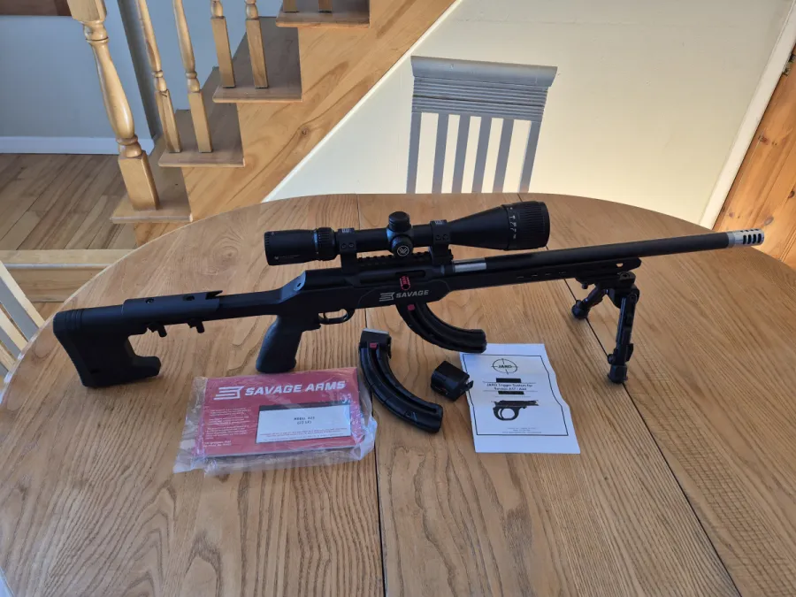 Practically brand new!!! Savage A22 Precision Lite, with everything in the photo!! And I even replaced the trigger group with a Jard one that cost me an arm and a leg, believe it or not... nearly $650.00 (US$388.00 plus customs fees). Yes, I know, I'm crazy 🤣🤣.