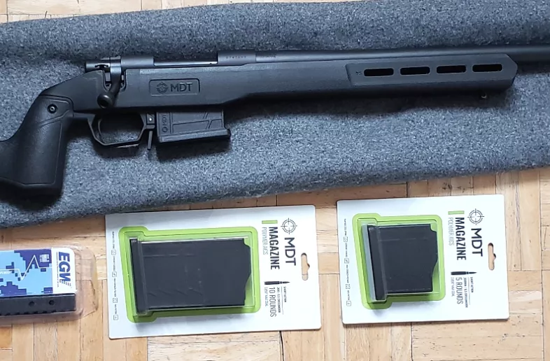 For sale a brand new unfired (never put a round in it) Howa 1500 .308 with a 24" heavy threaded barrel in a MDT Field chassis. Comes with one 5 round polymer magazine (beware metal magazine don't fit in this chassis). Asking $1000 and I split the shipping with you. Extra 5 round and 10 magazine (still sealed) and a EGW 0 MOA base (81040) for this rifle (also brand new) are available for an extra $100. Valid PAL is a must. EMT for payment.