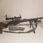 Mosin Nagant M44 calibre7.62x54r sporterized .Fabrique en Izhevsk en Russie en1954.Exporte au Canada.Chaque morceau sur l'arme ont le meme nombre d'identification sauf le stock.Le carabine est équipe d'un téléscope et d'un muzzle brake .Après leplacement du téléscope,il faut faire tirer l'arme pour le calibrer.Le mouffleur sur l'arme est une imitation .Il est interdit un d'utiliser un mouffleur au Canada.Ce qui est inclue avec l'arme dans la vente; 50 balles et étui de transport.PPA valide est obligatoire pour faire le transfert.