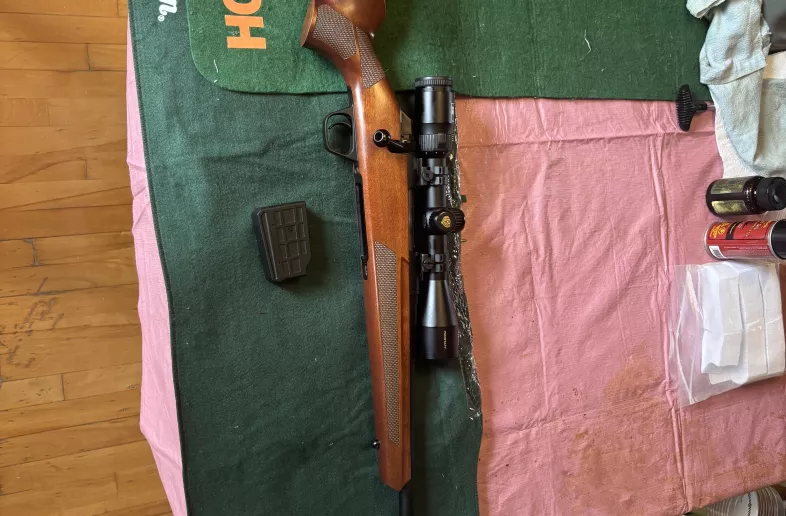Winchester 243 XPR with score Nicon Prostaf 3x9-40