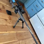 Stock has a pic rail mounted in place of the sling/bipod mount for an extremely sturdy base on this canting bipod.