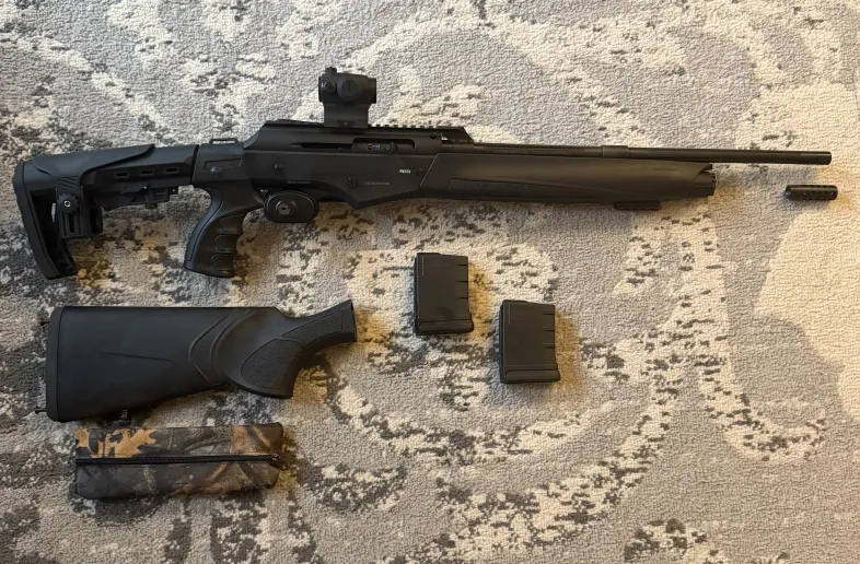 Included: Adjustable stock, original stock, cleaning kit, muzzle brake, 2 five round mags.