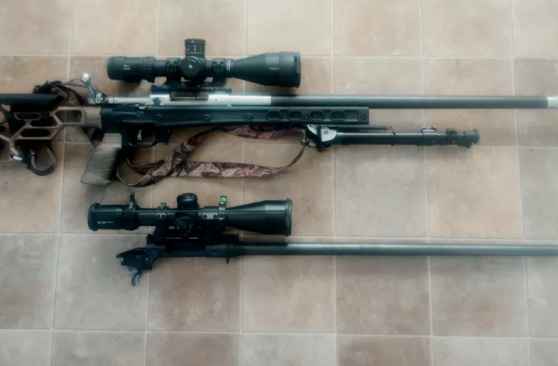 Image of target is @ 100m/5rnd group (1/4moa...?) 26" 1/9 twist 5R. Pushing 212gr ELDXs @ 2838fps. SD: 3.4 & 11.5 max spread.