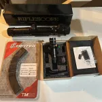 BNIB, unfired non-restricted Derya TM-22 “Distressed Red” semi-auto .22lr with 18” threaded barrel rifle with x2- 10rd poly mags, wrench and instructions. Extras include: