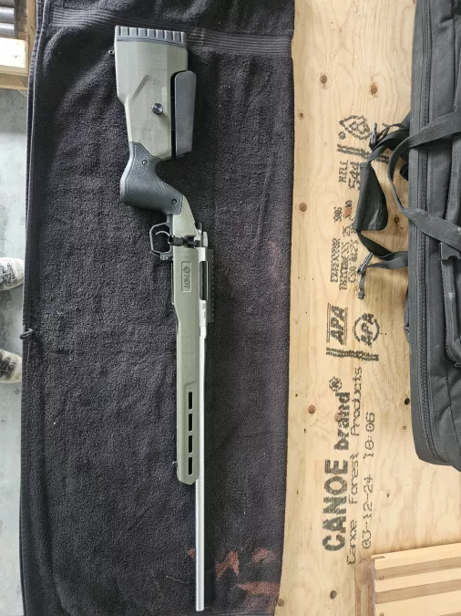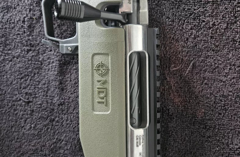 Barreled action has a triggertech primary and is in a MDT field stock. Comes with an MDT 5 round metal mag.