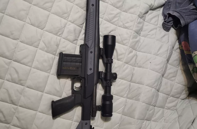 remington model seven chambered in 7mm-08. oryx chasiss and nikon prostaff 2.5-10 optic. does not include muzzle brake.