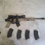 The rifle is very accurate for the platform and caliber — easily capable of ~1” groups at 100m and has no issues making consistent hits out to 300m. Runs reliably with AR mags, which is a huge upgrade over the original set up.