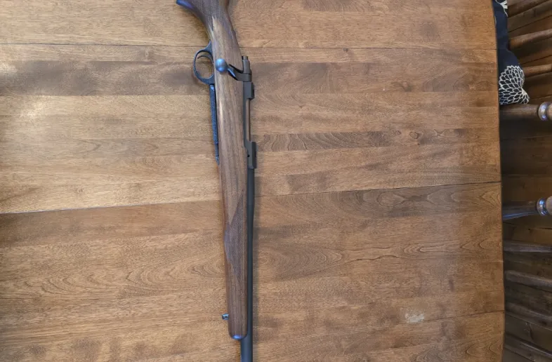 Rebarreled and refinished by Kotkas Custom, has less than 20 rounds thru it. Barrel length is 25".