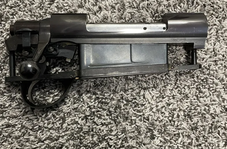 This Finnbear action was mated to a 30-06 barrel. The action is great but the barrel had a poorly cut chamber so I took it off. The action comes with 1" rings. The trigger is Sako excellent.