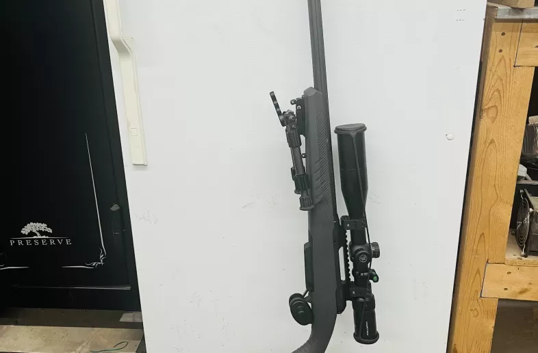 Savage 110 Tactical in 308 caliber. This rifle has a flutted barrel c/w muzzle brake. Excellent set up for long range target shooting. Comes complete with a Vortex Tactical 4x16x44 scope in mrad.Bipod and 10 round detachable clip.