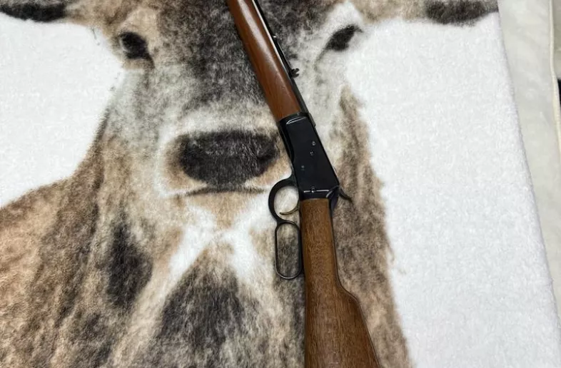 No markings on the gun except for the serial number. Octagonal barrel. High gloss blueing and stock. Some minor handling marks on the metal and stock.