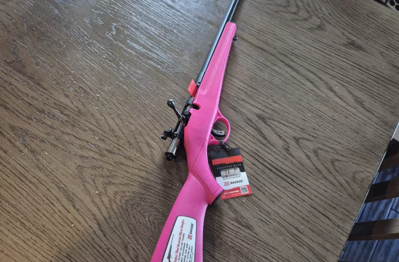 Brand new, bought it for my daughter but she barely ever used it. Its pink, so definitely for a girl lol guns in great shape. Maybe, maybe 50 rounds through it.