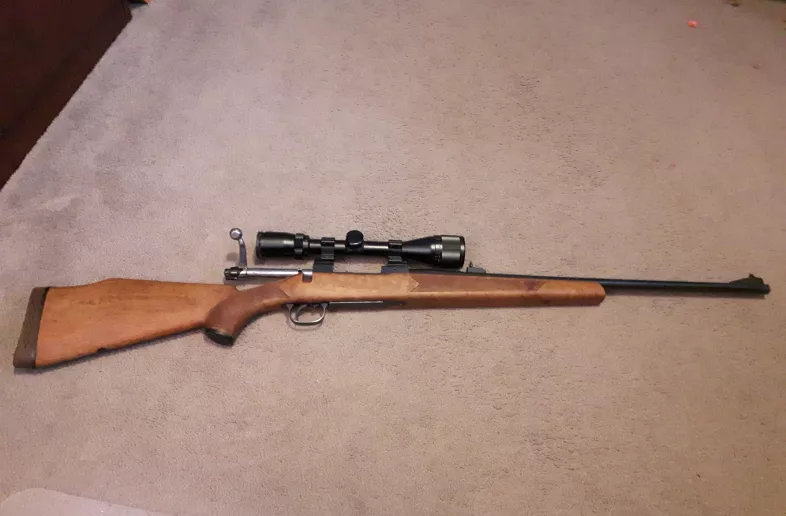 For sale: Tikka Model 55(sold as an Ithaca LSA55) in .308. Rifle in excellent working condition, shoots and cycles as it should, very accurate and consistent. These older Tikkas have a very good rating. It comes with full metal sights, as well as a Bushnell 4x12x40 scope. It has the 3 round metal detachable magazine. recoil pad and sling. The stock has a small crack in it that has had a good solid repair. This is a nice light user friendly rifle. I would prefer a cash sale(EMT works for me), but I will give some consideration to a trade. PAL verification required. I can split Shipping if necessary. Thanx for the interest.