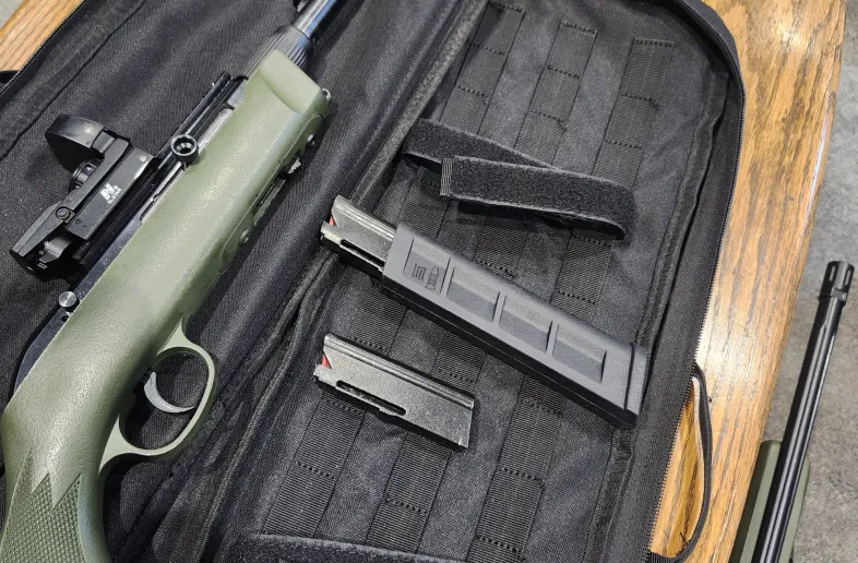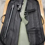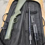Great, compact rifle. Comes with a 20 and 10 round magazine. Has a NC star red dot mounted to the custom mounted picatinny rail. Also comes with the Uncle Mike's (Savage) bag. Is in OD green colour.