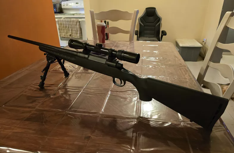 Comes with an older 4x Bausch and lomb scope, bipod amd 3 boxes of shells.