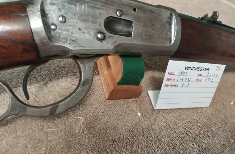 Winchester model 1892, Mfg'd 1912 in 25-20 cal. with a octagon barrel and full magazine. Lots of original finnish remaining and beautiful bore. $2,400.00 I do not answer texts.