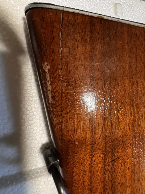 Good shape no rust but blemish and there is a little crack on one side of the stock (see photo).
