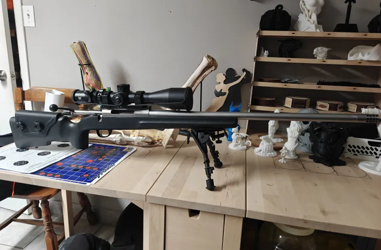 Fit with a Boyd's varmint pro stock with adjustable cheek riser, fiberglass bedding & muzzle brake Surpringly manageable recoil.