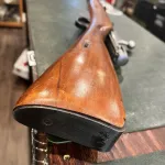 The rifle shows evidence of arsenal refurbishment, including a refinished Soviet stock and standard service finish. The wood stock remains in solid condition with normal handling marks and storage wear consistent with military service and long-term storage.