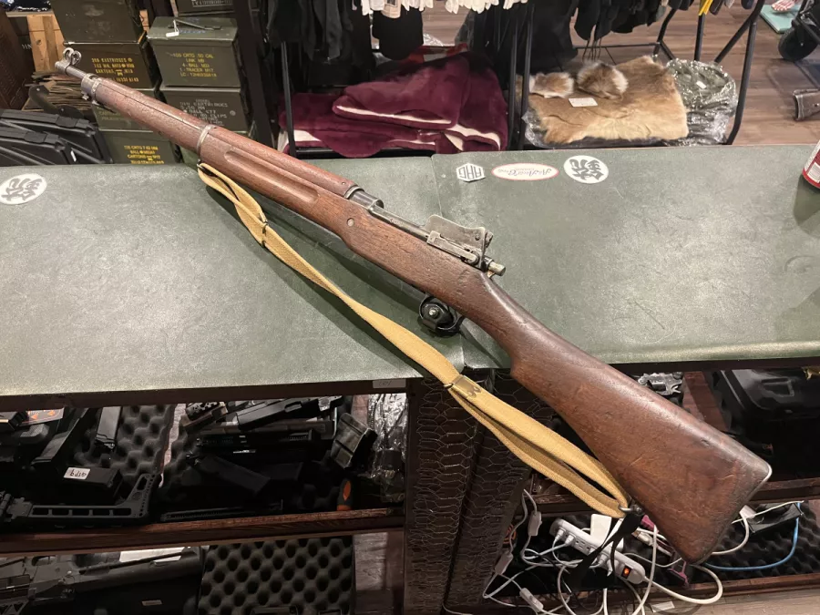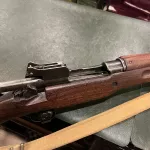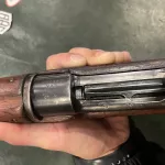 - Stock: Three-piece military wood stock, showing marks, scratches, and character from field service