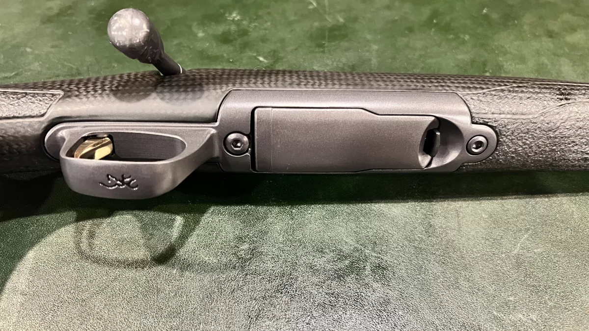 Stock: Synthetic with carbon-pattern finish (durable, weather resistant)