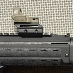 - Eotech EFLX red dot sight mounted on a picatinny riser mount