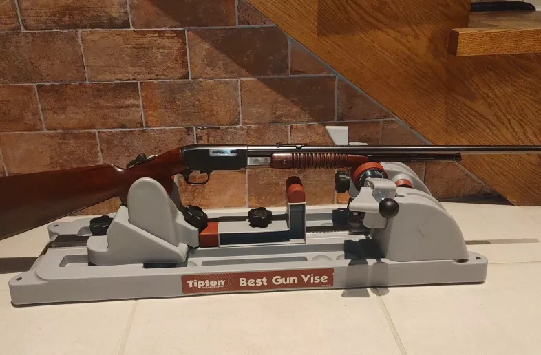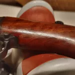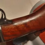 In good condition for its age. Bluing is starting to wear off. There is some minor pitting on the outside of the barrel. Smooth action functions flawlessly bright shiny bore, accurate shooter. Has Marbles flip up rear sight and flip up peep sight mounted. Like most other trombones, there are two small cracks at the grip that have been repaired. Forend in good condition.