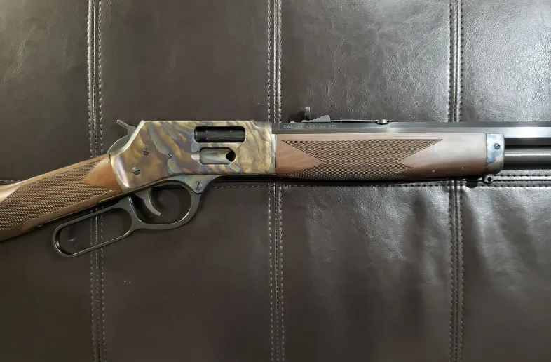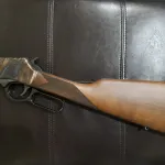For sale is a Henry Big Boy lever-action rifle in .44 Mag. / .44 Spl. This model has a color case-hardened finish on the metal, and a checkered walnut forend & stock (w/ straight grip). It has a 20" octagon barrel, with semi-buckhorn iron sight (adjustable). The receiver is also drilled and tapped (from the factory) for mounting a scope. This rifle has a side-loading gate as well as a removable tubular magazine. It is in excellent condition with only 5 rounds through it!