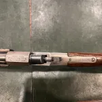 The wood stock is in solid condition with honest age-related wear consistent with its vintage, and the metal components show an even, well-preserved patina. The bore shows visible rifling and remains in good condition for its age, which is a notable positive for a rifle of this type and era.
