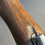 Laminated 1940-1941 era German Stock. Little hairline crack around wrist but not affect function. I would glue or epoxy it if you really mind but it’s okay for a rimfire.