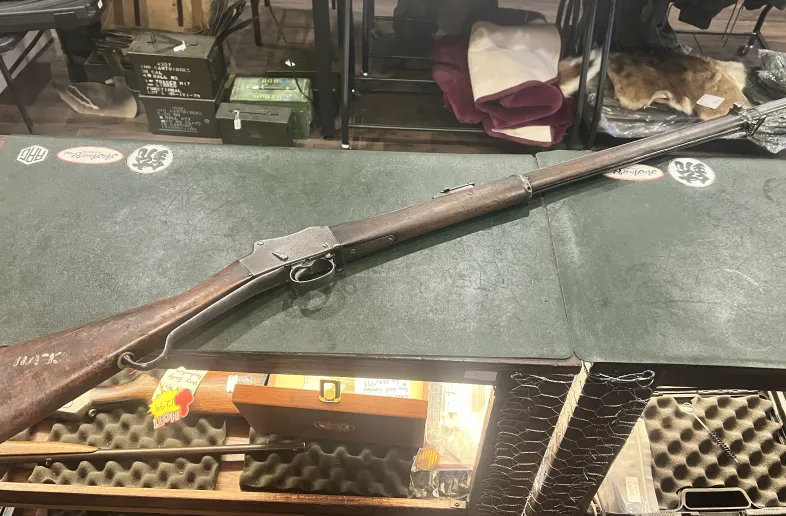 Offered here is an original Martini-Henry Mk II rifle, chambered in .577/450, featuring the classic single-shot falling-block action.