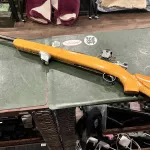 Main Description: Manufactured by Carl Gustafs 1901, serial numbers mismatched converted for Ontario Rifle Association No23 for Prone Position Target Shooting. Globe front sight with post and ramp, adjustable Parker Hale. 5C adjustable peep sight, blued finish, heavy barrel, modified bolt handle. One piece Maple target wood stock, pistol grip, rollover cheek rest, black polymer butt plate, action has been bedded, forearm has short rail with alloy hand stop and sling swivel, two holes for swivels not present in forearm.