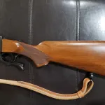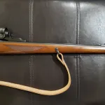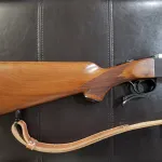 For sale is a rare Ruger #1 (No. 1) single-shot falling block rifle chambered in 7×57mm (7mm Mauser). It is the RSI (International) model with 'Mannlicher' (i.e., full) stock. This model has a checkered walnut stock/forend (w/ Ruger's red rocoil pad), and blued metal (action/barrel). It has built-in iron sights, and comes with a set of 1" rings (steel) for mounting a scope. In addition, the receiver is drilled and tapped for a side-mounted peep sight. It also has sling swivel studs, and comes with a beautiful leather sling. This rifle has a top-tang safety. It is in excellent condition, with low round count (the bore is shiny with strong rifling). This Ruger #1 was shipped in 1990.