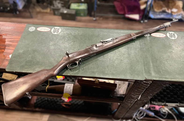 Metal surfaces show an attractive and even patina, with thinning original blue but no heavy pitting or corrosion. The stock appears unrefinished, showing natural handling marks without cracks or repairs. The bore remains bright with sharp rifling, and the straight-pull action cycles smoothly with solid lock-up.