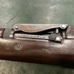 This rifle remains in full military configuration, with straight-pull bolt action, 5-round internal magazine, sling swivels, and a steel buttplate with trap for cleaning gear. It retains the early-production contoured upper handguard, a distinctive feature seen only on early Model 1905 rifles.