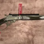 Reintroduced under Ruger, this durable 7.1 lb rifle includes a large oversized loop lever, Picatinny rail, and Skinner sights for quick, reliable handling. FIBER OPTIC FRONT SIGHT WITH A TRITIUM RING FOR IMPROVED VISIBILITY IN LOW LIGHT CONDITIONS. ALSO INCLUDES: SLING SWIVEL STUDS & OFFSET HAMMER SPUR installed.