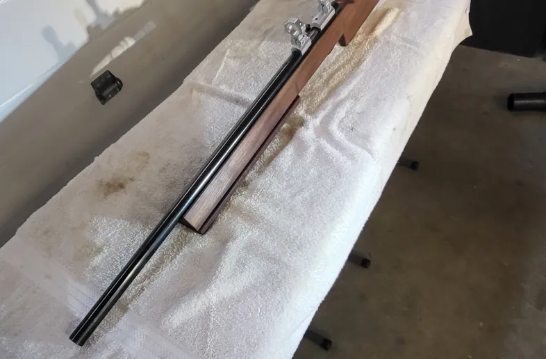 Schultz and Larsen 22lr target in benchrest stock