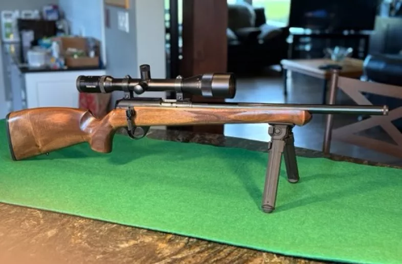 This is the ultimate most versatile competition 22 LR ever made. The 1727F is a very hard rifle to find. When i wanted to compete once again, I had to buy this rifle in parts and assemble it as there were no rifles available in Canada or the USA at the time. The rifle in pieces cost over $7000.00 without tax and shipping everything. This is not a re-barrel situation, the barrel and action were purchased as one unit from the factory. This rifle is unique because it qualifies for 2 different classes. Being only 8.5 pounds it qualifies for "hunter class" competition and as well meets the requirement for "bench class" competition. This is an advantage if you know what I'm taking about. Health reasons changed my direction . This gun has fired no more than 200 rounds of factory match ammo and for those who don't know this, the Fortner design enables the shooter NOT to move your head when chambering another round.