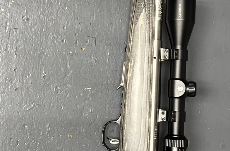 Savage 17 hmr with heavy barrel and boyds laminate stock and accutrigger barely used in new condition except one little chip on stock comes with bushnell 3x9 buyer pays shipping